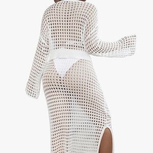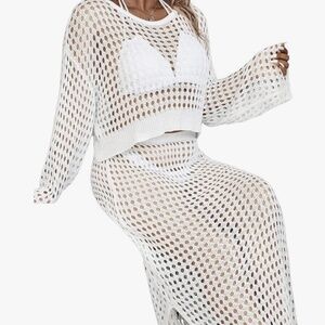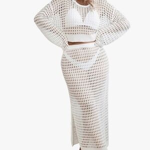 Women's 2 Piece Plus Size Cover Up Sweater and Split Thigh Skirt Set Beach Swim Cover Up Outfit