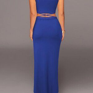 Women's 2 Piece Skirt Set Maxi Dress High Waist Slit Sleeveless Bodycon