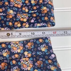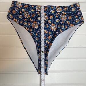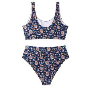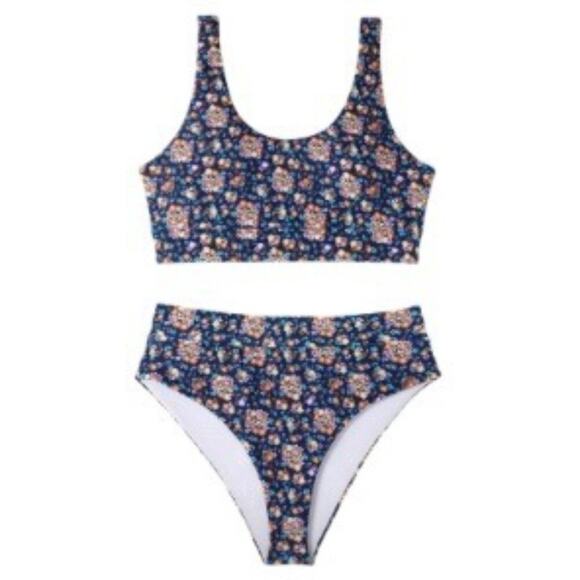 Womens 2 Piece Swimsuit Small Blue Ditsy Scoop Neck Floral Bikini High Cut Cheek