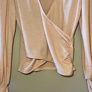 Tags: topshop, wrap, front, tie sleeve, blouse, deep v neckline, texture material, long sleeve, flowy ties, blush pink, womens top, casual, romantic, Old Money, casual, date night, day outings, vacation, summer, winter, spring, fall, concert wear, parties, errands, coffee date, get-togethers, bbq, night out, rooftop, business casual, career, professional, business attire, interview, successful, powerful, business trips, feminine, girly, fun, flirty, crop, barbiecore, Bows on Bows