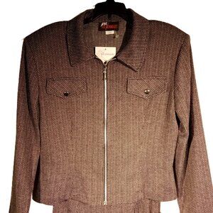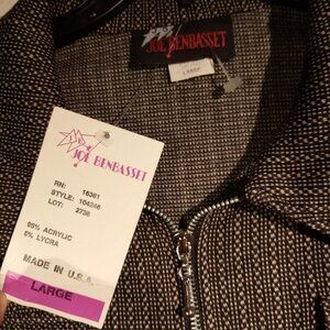 Women's 2 pc suit with Pants sz L Black White print Vintage/Retro NWT Zip Jacket