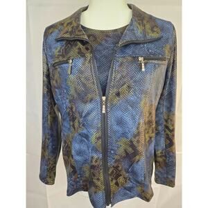 Womens 2 piece blazer size S small misses 4 6 suit coat snake print brown