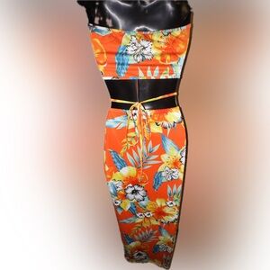 Women’s 2 piece floral skirt set size small has stretch. Brand new never worn