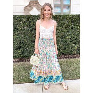 MATERIAL: S=US 4-6,M=US 8-10,L=US 12-14,XL=US 16-18,XXL=US 20-22. If you want a loose style, Please choose a one size up! This Boho Skirt Is Made of Lightweight, Breathable and Skin-friendly Fabric. Flowy, Smooth, Good Elasticity, Super Comfy to Wear in Spring and Summer.
