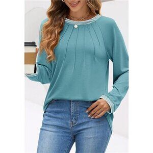 *Upgrade your wardrobe with these trendy long-sleeved tops. Featuring a pleated crewneck and striped neckline and cuffs, these tops offer a stylish look. The loose fit provides comfort and ease of movement, which is suitable for a day out with friends or a casual work setting. Pair it with jeans or a skirt for a chic look.