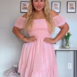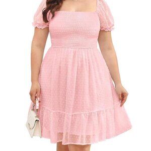 Womens 2025 Dress Short Flutter Sleeve V Neck Swiss Dot Plus Size Fashion Pink
