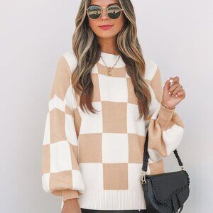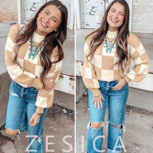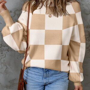 This trendy knit pullover features drop batwing sleeves, chic mock neck, classic striped/plaid pattern, soft knitted with ribbed cuffs, loose silhouette fit for almost all the body shapes! Create your new early spring or autumn/winter fashion look
