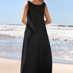 Fit: Features: This casual maxi dress features a scoop neck, sleeveless, two side pockets are convenient and practical, maxi length, solid color, loose fit, lightweight, maxi tank dress for women, 2025 summer trendy dresses for women