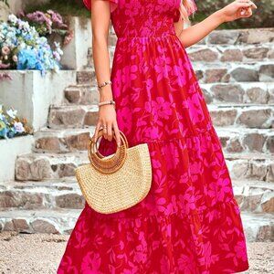 HIGHLIGHTS: Our floral womens dresses maxi length feature feminine smocked top, 2 pockets and stylish tiered bottom details. This flutter short sleeve s