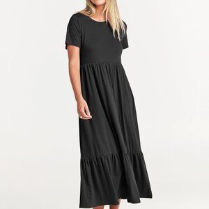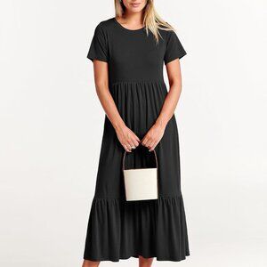 Womens 2025 Summer Casual Maxi Dress A line Tiered Flowy Short Sleeve Crewneck T