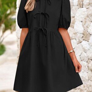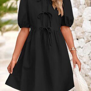 Highlights: The Short Lantern Sleeves Of Our Cute Mini Dresses Add A Touch Of Femininity, While The Tie Front Bow Detail Adds A Playful Twist. This Solid Color Dress For Women Exudes Elegance And Sophistication, Making It Ideal For Any Casual Occasion
