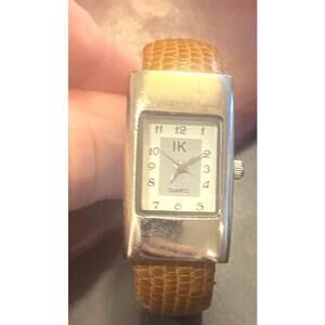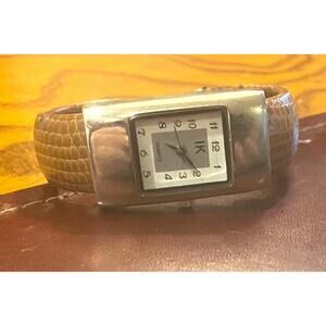 Women's 20mm Silver Tone IK Bangle Watch, Brown Leather Wrapped