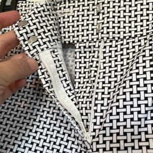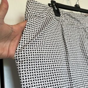 Stylish black and white patterned Capris by Talbots. Perfect for any occasion. 41” waist w/ sewn in elastic on back hip area 2% Lycra/spandex 19.5” inseam