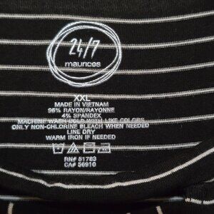 Super soft, in great condition. 3/4 sleeve, 96% Rayon 4% Spandex. Black w/ white stripes.