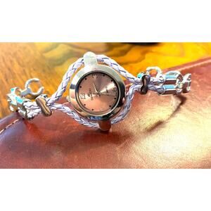 Women's 25mm Silver Tone Denacci Watch, Leather and Stainless Band