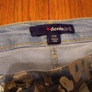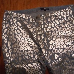 Brand New 28W Plus Size Grey/Silver pattern short jeans/Capri length. NEVER WORN. No tags.