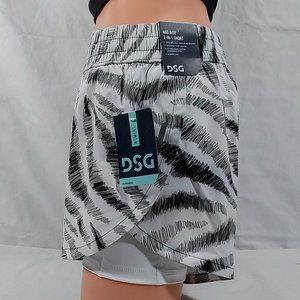 Women's 2-In-1 Printed Running Shorts-Trippy Zebra Black/White-Various Sizes-NWT