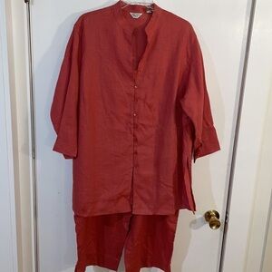 Women’s 2-Piece 100% Linen Set Laura Ashley Size 1X /20W Mauve