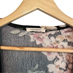 Women's 2X PLUS Black Velvet Floral Whimsigoth Flare 3/4 Sleeve Open Front Top