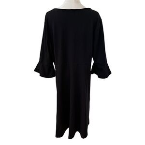 Women's 2X Solid Black Staple Minimalist Curvy Stretch Midi Bell Sleeve Dress