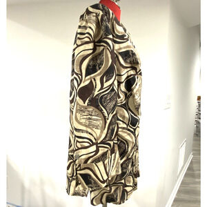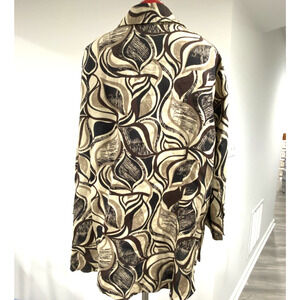 Womens 2X plus size linen rayon blend blouse casual brown tan abstract print