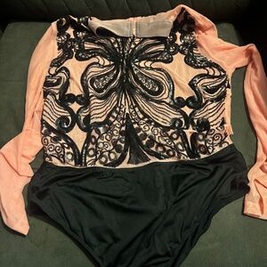 Brand new never worn, only tried on once, without tags. No snags or missing jewels. Adorable high neck bodysuit, very flattering fit. Gorgeous for holiday outfits!