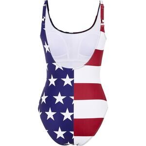 Womens 2XL American Flag Tummy Control Thin Strap One Piece Swimsuit Sim Suit