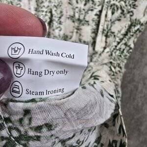 floral pattern dress, maxi dress, cotton rayon dress, green white dress, women's dress, 2XL dress, botanical print, hand wash dress, summer fashion, plus size dress, comfortable dress, China made dress, flowy dress