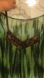 This gorgeous top reminds me of beautiful art. Shades of green are mixed with aqua on the sheer fabric. The sweetheart neckline features a 2-inch section of glistening copper colored sequins along with brown tubular beading. Outer top has a hi-low hem. Included in this set is a brown camisole with adjustable spaghetti straps. I would pair this with a white pair of capris & some hoop earrings for a great Boho look! In excellent condition. Sz L.