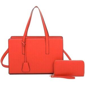 Women's 2pcs Orange Pebbled Boxy Satchel Handbag and Wallet Set