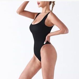 Sexy Ribbed Square Neck Thong Bodysuits, flattering square neckline, thong,sleeveless, wide set straps simple in design,don’t see through