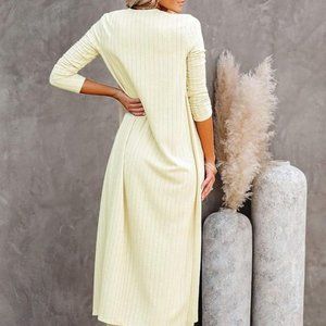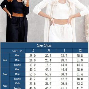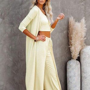 Women's 3 Piece Ribbed Loungewear Set - Crop Top, Loose Pants, Long Cardigan