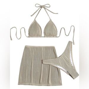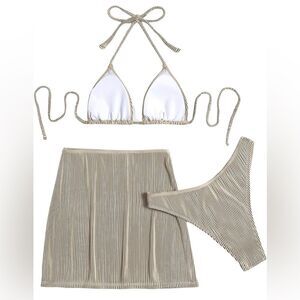 Women's 3 Piece Zebra Striped Bikini Swimsuit & Beach Skirt Bathing Suit (165)