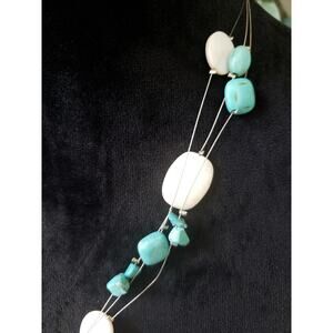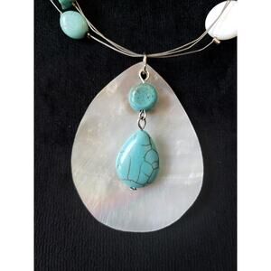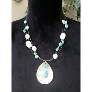 Womens 3 Strand Silver Tone Turquoise Blister Pearls Station Pendant Necklace.