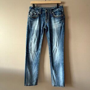 Women's 30 Miss Me Sunny Skinny Distressed Denim Jeans Low Rise Medium Wash