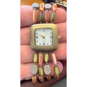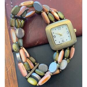 Women's 30mm Brass Toe Watch, Multi-strand Stone Bracelet Band