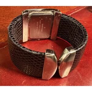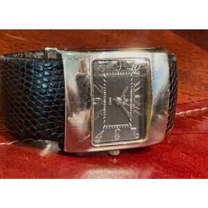 Women's 32mm silver Tone Premier Designs Bangle Watch, BlackLeather Wrap