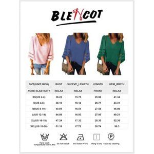 Womens 3/4 Bell Sleeve Fashion V Neck Lace Patchwork Blouse Casual Loose Shirt