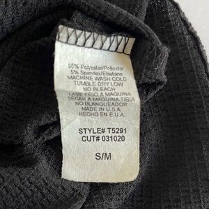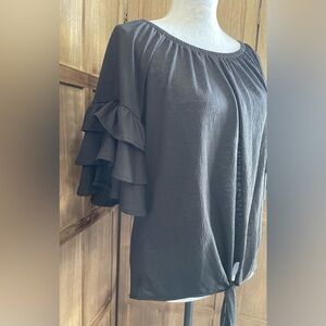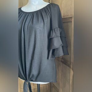 Women’s Vision Black 3/4” ruffled sleeve with front tie knot. Can be worn off the shoulder.