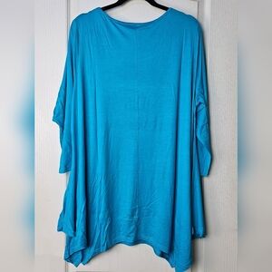 Womens 3/4 Sleeve Casual Flowy Loose Fit Swing Top Tunic, Lake Blue, 3X