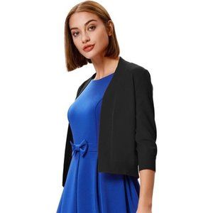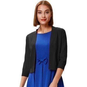 Women's 3/4 Sleeve Knit Cropped Cardigan Sweaters Open Front Bolero Shrugs Coat