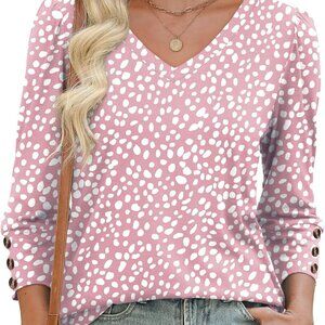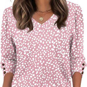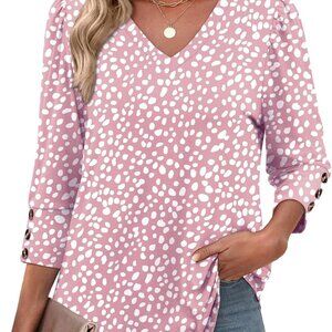 Design Highlights:These 3/4 length sleeve womens tops feature elegant puff sleeves with three decorative buttons, creating a refined dressy casual look. The flattering V-neck and curved hem make these plus size summer clothes for women universally stylish. Perfect as blouses for women business work or summer outfits for women, the tailored yet relaxed cut offers effortless elegance for every occasion.