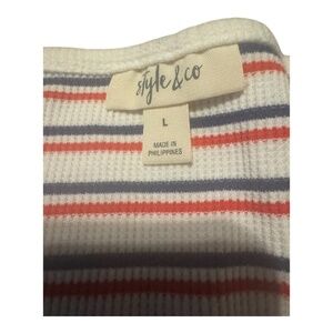 Style & Co, Blue & Red 3/4 Sleeve Pinstripe, Waffle Knit, Henley Shirt