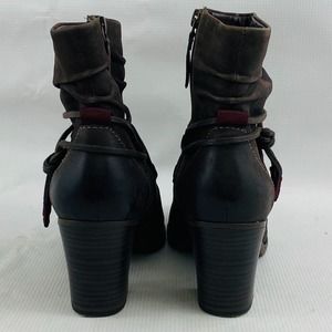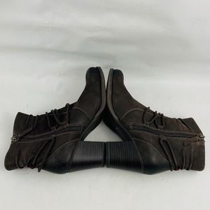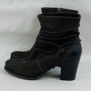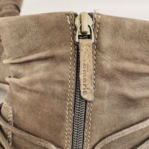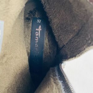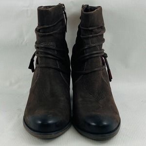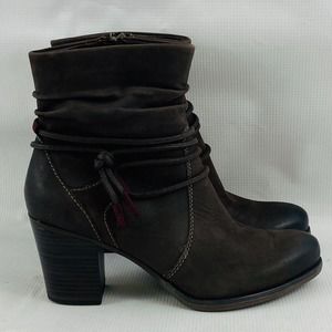 Womens 37 US 6.5-7 Tamaris Ankle Boot Dark Brown Leather Side Zip Slouch Lined