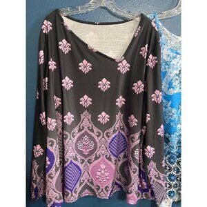 Womens 3-Pack V-Neck Tops 3X, 4X Concepts Polyester Boho & Abstract Patterns