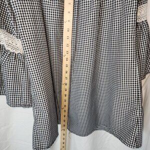 Women's 3X Boho, Hippie, Lacy, Large Bell Sleeves, Embordered Top. Like New. No Visible Ware.This Women's 3X Boho, Hippie, Off Shoulder, Large Bell Sleeves, Embordered Top by MPH Collection is a versatile and stylish addition to any wardrobe. Made of a comfortable and breathable Chambray fabric, this tunic features a round neckline, pullover closure, and ruffle accents for a trendy touch. Perfect for a variety of occasions from casual to formal, this top is designed for easy care with machine washable instructions. The oversized fit and stretch material make it a flattering and comfortable choice for all-day wear in the summer, fall, or spring seasons.