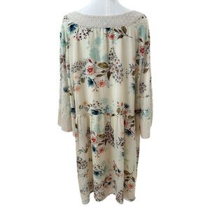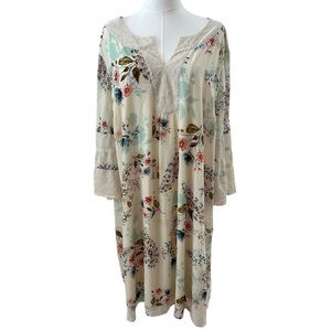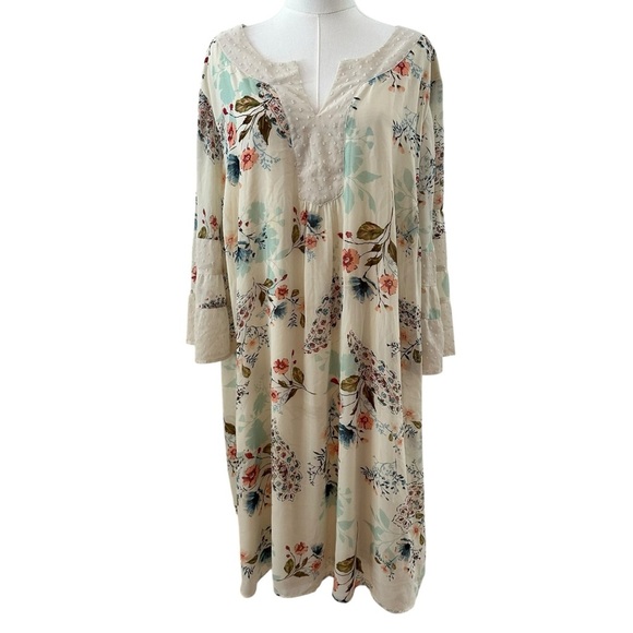 Women's 3X Ivory Floral Cottage Flowy PLUS Bell Sleeve Festival Curvy Soft Dress