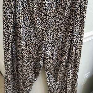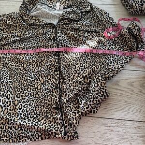 Women's 3X Leopard Print Pajama Set button up short sleeve cropped bottoms EUC
