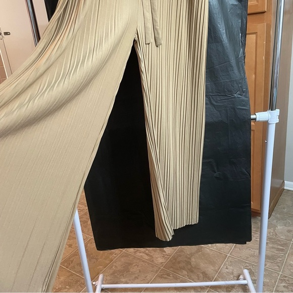 Women’s 3X Soho Apparel Beige Wide-Leg Pleated Pants Paper Bag Waist