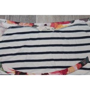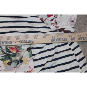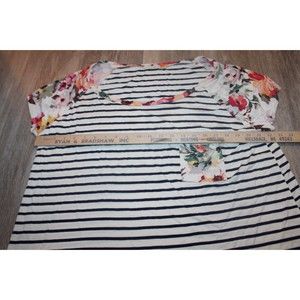 Womens 3X Spring Summer Tee Shirt Black White Strips with Floral design Sleeves